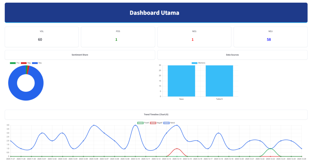 “Mata dan Telinga Digital Anda.” Di era informasi yang begitu cepat, ketidaktahuan adalah risiko terbesar. Layanan ini menggunakan Kecerdasan Buatan (AI) untuk memantau pergerakan data di internet secara real-time. Kami membantu Anda melacak sentimen publik, tren media sosial, dan reputasi brand, sehingga setiap keputusan strategis Anda didasarkan pada data yang akurat, bukan asumsi.