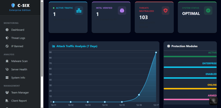 Lindungi website sekolah dan instansi dari serangan siber modern dengan C-SIX WAF. Menggabungkan 5 Lapis Pertahanan + Kecerdasan Buatan