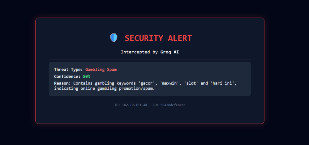 Next-Gen AI Firewall: Stop Bot & Iklan Judi Online.